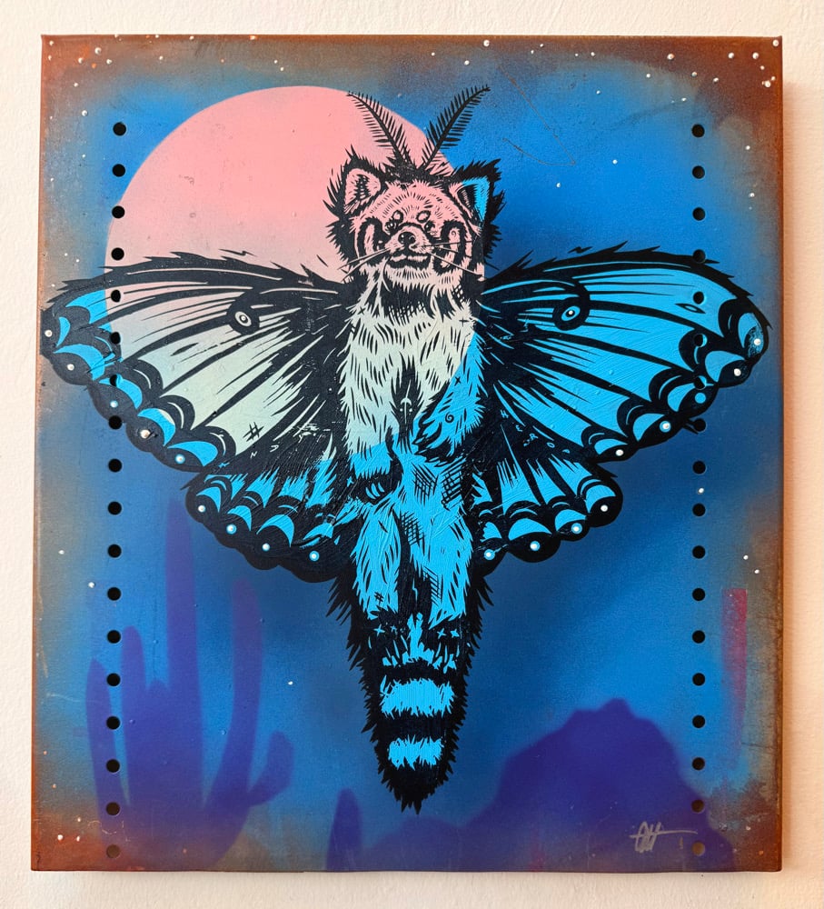 18 x 20 Mixed Media on Salvaged Steal Shelf